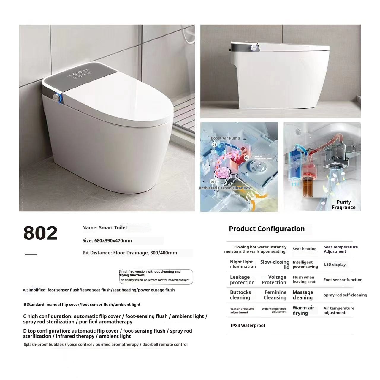 The 802 model is available in multiple configurations (A/B/C/Top), allowing customers to choose the ideal option based on budget and features. Whether it’s hands-free automatic flushing, foot-sensing cleaning, or women-care washing, the 802 provides a truly luxurious bathroom experience at an unbeatable value.